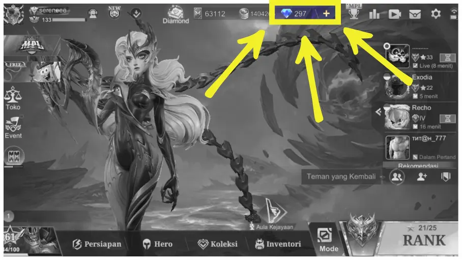 1. Pertama-tama, pencet tanda + pada nominal Diamonds kalian, ada di bagian atas seperti yang terlihat pada Gambar 1.
